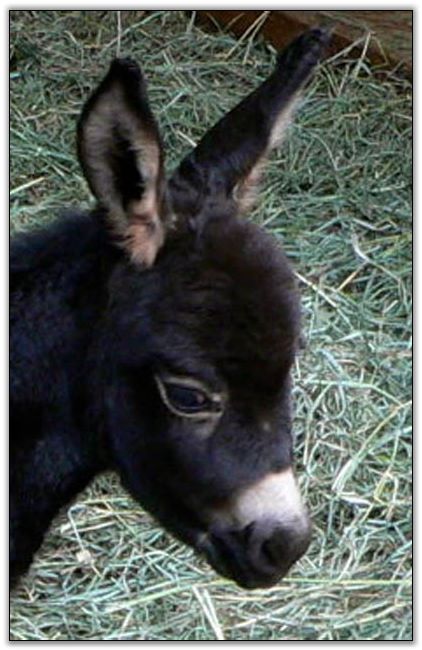 This was the first time in my 25 years of breeding miniature donkeys that my kids and grandkids were here and got to witness the foaling and I was able to keep it going smoothly. Thank God everything went perfectly. I looked up and they were all lined up along the outside of the stall in their pajamas. Hence the name Pajama Party. This little girl is so sweet and so trusting. At a week old I was haltering her, picking up and cleaning all 4 hooves, etc. You can do just about anything with her as long as she is getting attention. I would love to keep her but I am not getting any younger so trying to think with my brain instead of my heart. She is very special and will need a friend to join her at whomever’s farm she goes to.