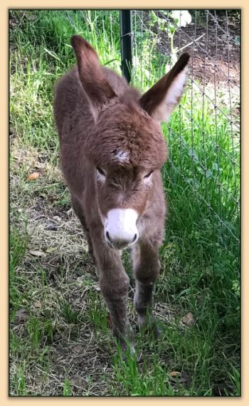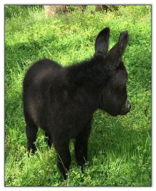 Well, once again Tootsie Pop gave us a teeny tiny baby. He is perfect in every way and we couldn’t be happier with this little guy. He is everything a breeder could hope for in a baby. Of course, we always wish for a spotted baby when breeding to a spot but we are not one bit disappointed with Piccolo. And as the days and weeks went by we are sure he is one of the friendliest and most willing little donkeys ever. Absolutely love him.