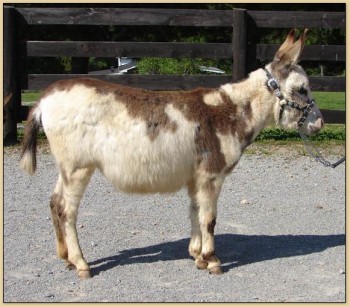 Mossy Oak's Just A Gigalo (Zibby), spotted miniature donkey jack for sale.