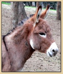 Lily is a very correct donkey. She is maturing well and has a nice round behind, straight legs, nice chest and the most beautiful face!.   Since the day she was born she has always looked like she is wearing makeup.  Almost too pretty to be true.